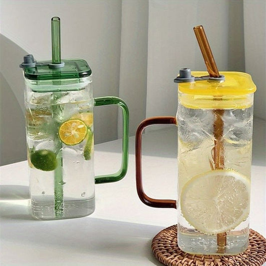 Transparent Square Drinking Glass With Lid And Straw