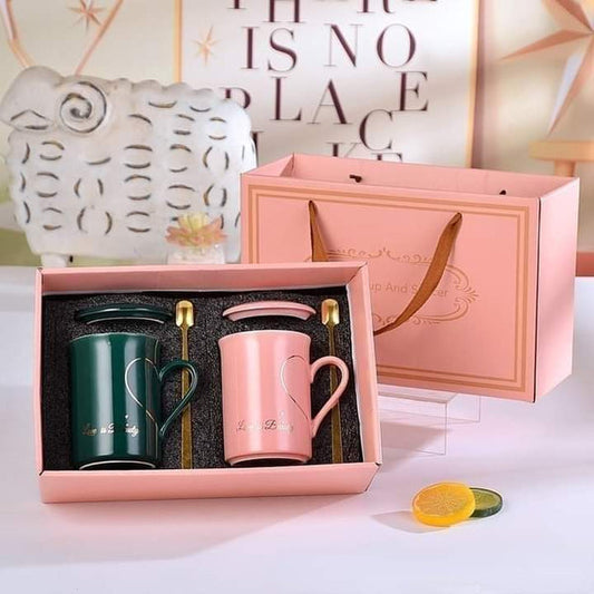 Marbel look couple mug set in box packing