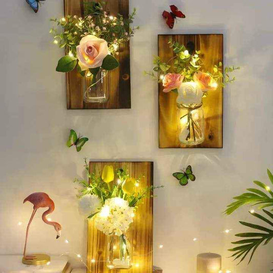 Flower Garland Jar home decoration flower led jar with wooden hanging